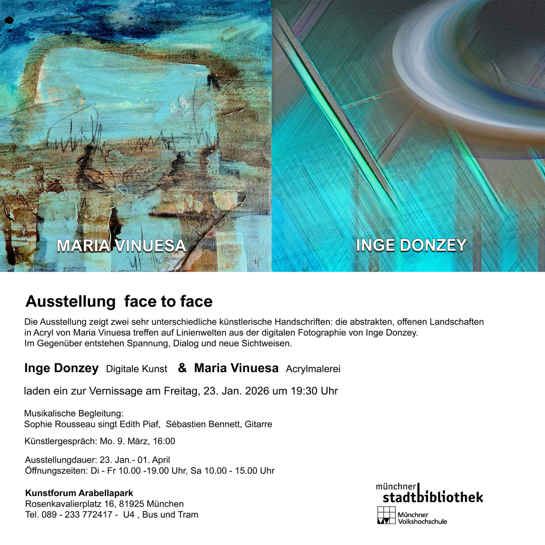 Inge Donzey lädt uns zu Ihrem Künstlergespräch im Rahmen Ihrer Ausstellung ein.